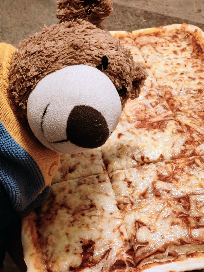 So Freunde – jetzt ist Schluss mit lustig! Wollte ich als verfressener Bär einfach mal eine Kleinigkeit essen, so eine kleine, leckere Pizza, kommen alle an und wollen etwas abhaben – geht gar nicht! #bären #brumderbaer #plushies #plushiecomnunity #plushiesoninstagram #oskar #verfressenerBär #pizza